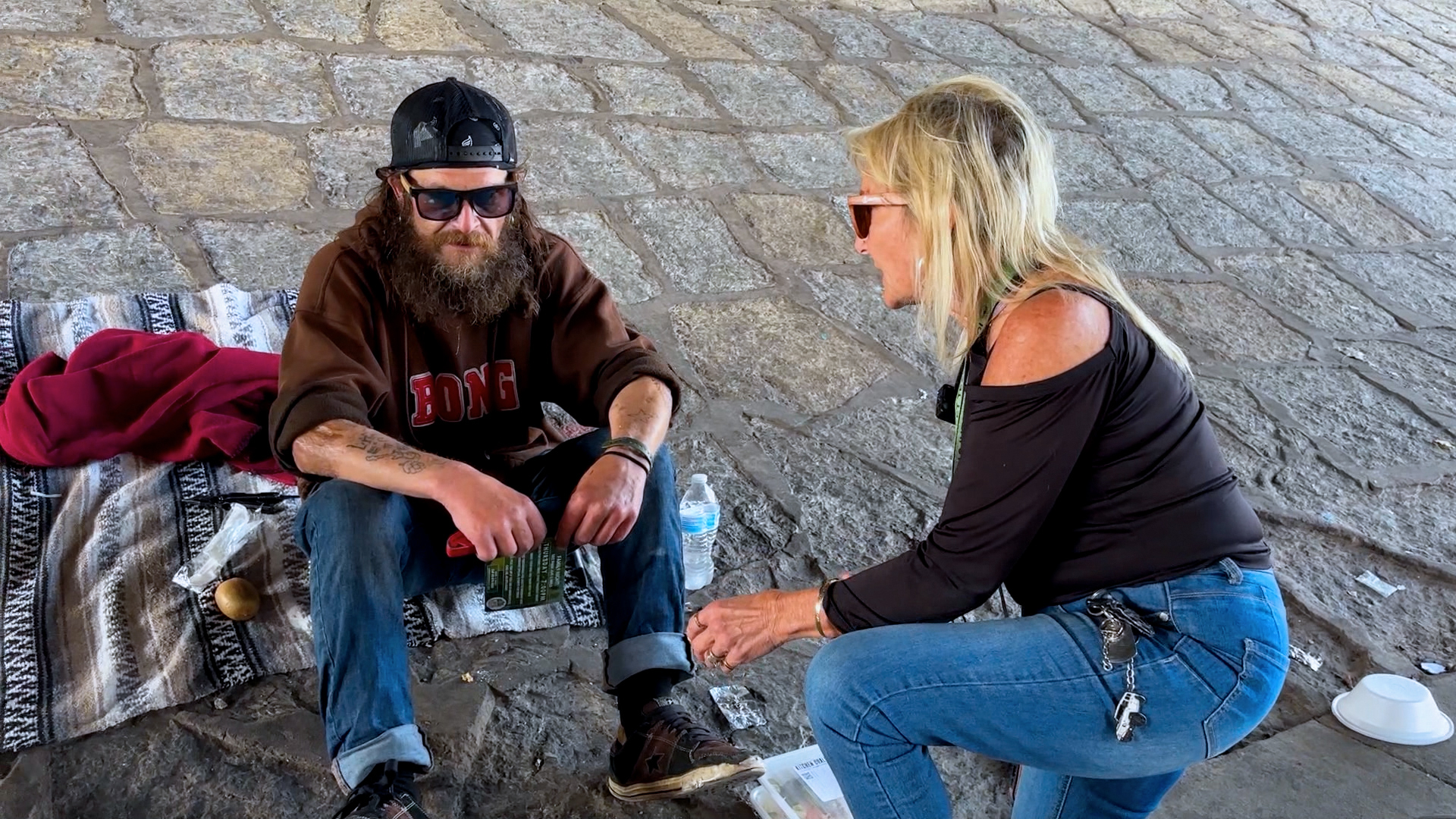 She told us, “Most of these people live in encampments, but right now the encampments are being moved and moved and moved and moved, so they find gathering places so it’s a group of people who are homeless. The main problem is mental illness combined with chemical use.”