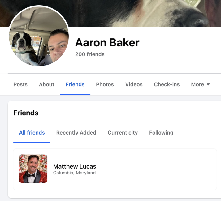 Photos and videos posted by Blackwelder to Facebook show birthday and Memorial Day celebrations at Baker’s Maryland home in 2023. Included in both rounds of festivities, a Washington Free Beacon analysis found, was Matthew Lucas, a Maryland man who pleaded guilty in 2016 to felony sexual abuse of a 13-year-old boy. While he was sentenced to 20 years in prison, the sentence was suspended and he received just 5 years of probation. He remains a registered sex offender in Maryland.