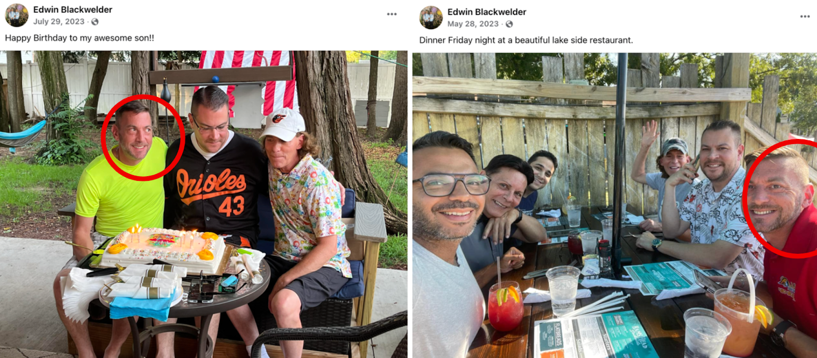 Weeks after his probation expired in 2023, Blackwelder purchased the Sorrento, Fla., property Baker lists as his residence. The year prior, he posted a photo to Facebook that shows him smiling alongside Baker and Baker’s partner, Buete. “I had the pleasure of visiting with my son, his partner, and my sons [sic] in-laws over the 4th of July weekend,” he wrote. “My son, Aaron, is the tallest one.”