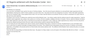 ‘Dean Chemerinsky’s email is wrong, and we will be addressing the issue with the university,’ Brandeis Center lawyer Paul Eckles says