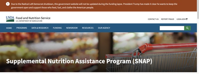 If you go to the Department of Agriculture’s SNAP website, you’ll see a comment about the shutdown.
