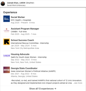 Khan started receiving a taxpayer-funded salary in August when she began working for NYC Health + Hospitals, according to her LinkedIn profile, which she also deleted. Her role providing “assistance and counseling to clients and their families who are dealing with social, emotional and environmental problems” likely involves assisting Zionists, considering the New York metropolitan area has the largest population of Jews in the country.