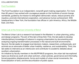 “The Beirut Urban Lab is a collaborative and interdisciplinary research space,” she said. “It produces cutting edge scholarship on urbanization by documenting and analyzing ongoing transformation processes in Lebanon and its region’s natural and built environments.”