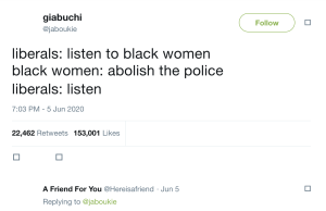 “[G]ood morning, especially to the 54% of Americans that believe burning down a police station is justified,” she posted to X on June 3, 2020.