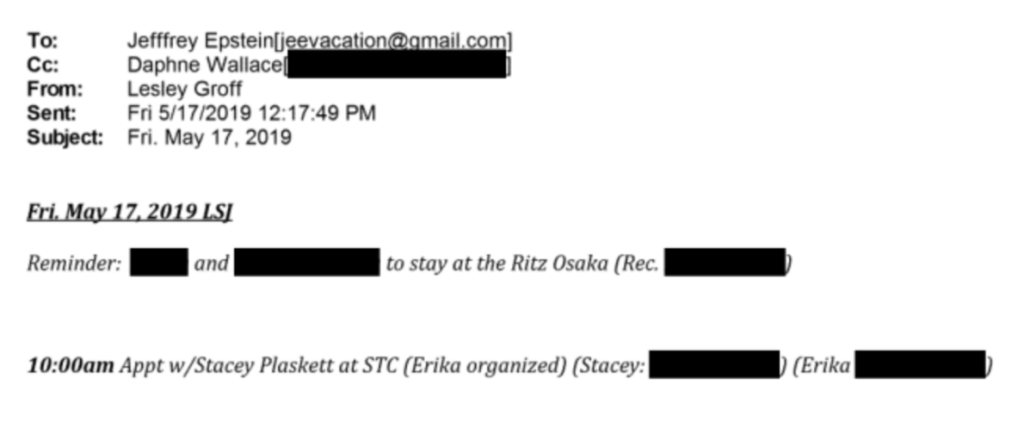 The new documents also show that Plaskett visited Epstein at his private island, Little St. James, in August 2014 and again on May 18, 2019, just two months before Epstein was arrested. Plaskett was accompanied on both trips by Erika Kellerhals, a Plaskett campaign donor and longtime real estate attorney for Epstein. Plaskett worked for Kellerhals’s firm before joining Congress.