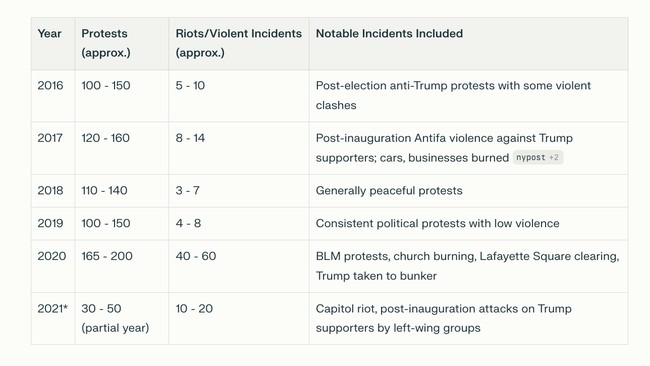 Here’s a basic box graph I asked Perplexity AI to create for me of most of the Antifa violence, BLM protests, street blockages, and “Shut Down DC” events.