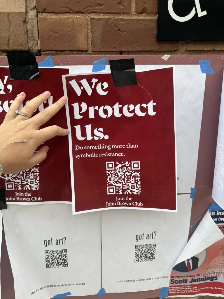 Flyers posted at Georgetown University appear to advertise a new chapter of the John Brown Gun Club, a left-wing and “anti-fascist” extremist group that first formed in Kansas. One of the flyers calls on prospective members to “do something more than symbolic resistance.” Another touts the chapter as the “only political group that celebrates when Nazis die” and includes the “Hey, fascist! Catch!” phrase that accused Charlie Kirk assassin Tyler Robinson inscribed on one of his bullets.