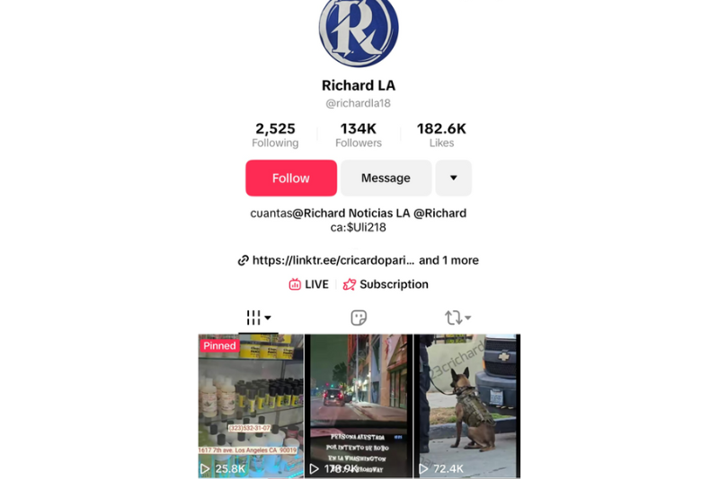 On his TikTok account, @richardla18, Parias frequently posts videos recording ICE enforcement tactics while documenting the detentions of other illegal aliens. Many of his clips — some garnering hundreds of thousands of views — show him filming agents from a distance, sometimes narrating the events in Spanish and encouraging viewers to “know their rights.”