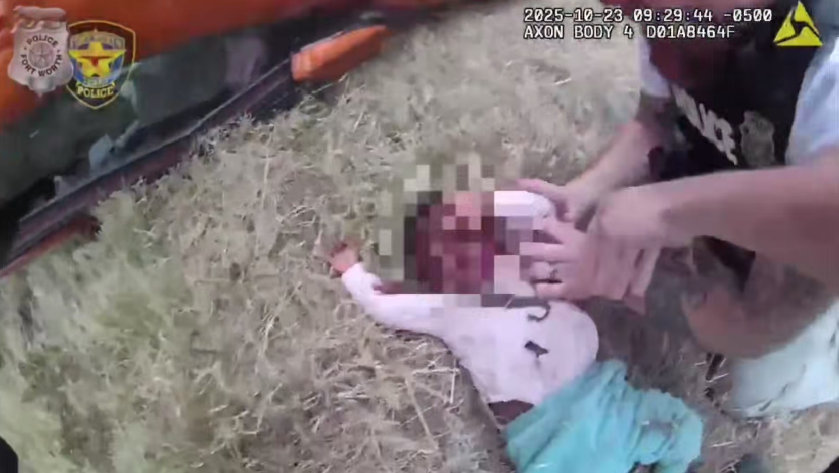 Body camera footage shared Friday on social media by the Fort Worth Police Department shows an officer running toward the overturned car and beginning to search for the child as a distraught woman can be heard in the background yelling for her baby.
