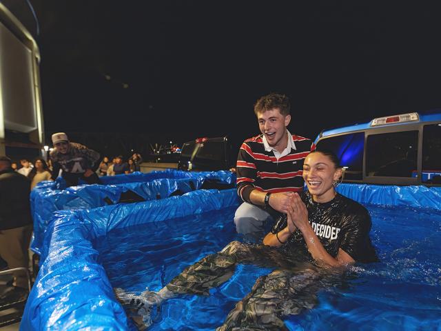 Hundreds who attended the event took the next step in their faith by getting baptized outside of the Cincinnati Red Stadium. Shouts of joy peeled through the crowd of onlookers as students, who were baptized by other students in the back of pickup trucks, came out of the water.