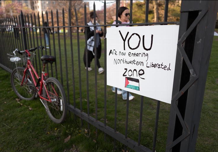 Northwestern has seen a slew of anti-Semitic incidents. During Passover in April, anti-Semitic vandals at Northwestern used red paint to write “Death to Israel” and drew Hamas triangles on Kresge Centennial Hall, a campus building that houses the school’s Holocaust center, the Washington Free Beacon reported. Earlier that month, Northwestern’s chapter of Students for Justice in Palestine hosted an anarchist training session featuring two pamphlets that included propaganda from the Popular Front for the Liberation of Palestine terror group.
