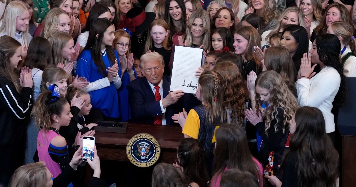 The president said at the signing ceremony for the executive order, surrounded by young girls and women at the White House, “Under the Trump administration, we will defend the proud tradition of female athletes, and we will not allow men to beat up, injure, and cheat our women and our girls. From now on, women’s sports will be only for women.”