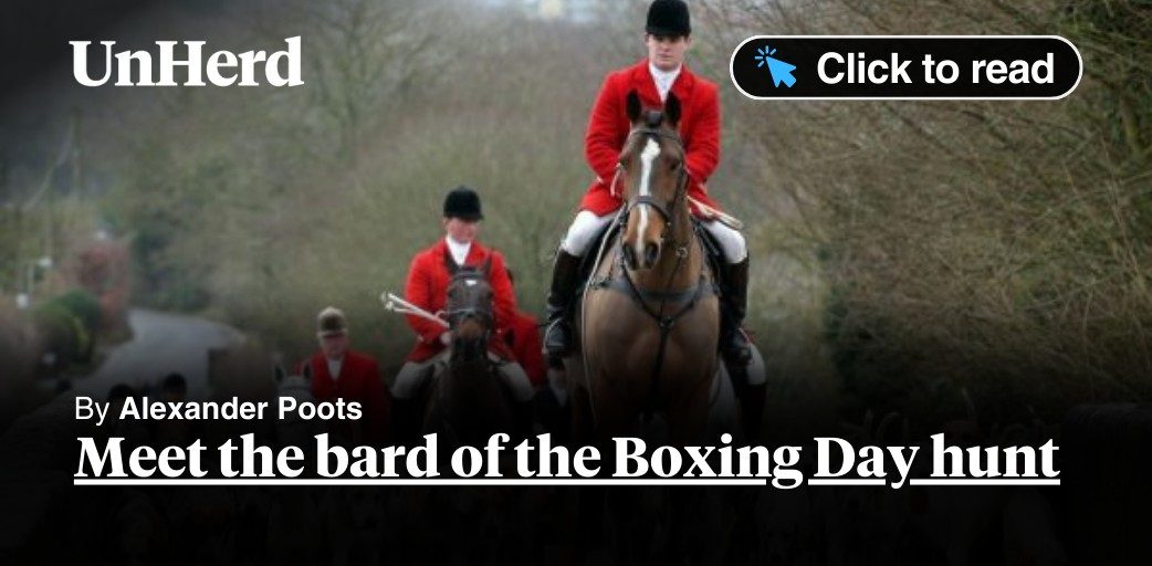 This morning, hunts across England and Wales will gather for their last Boxing Day meet. Anxieties over the future of hunting are nothing new. In the 18th century, huntsmen worried that the expanding canal network, which effectively laid a series of un-jumpable barriers across the countryside, would put an end to the sport. The railway provoked similar fears a century later. But while hunts adapted to a changing landscape, a radically changing culture is another matter entirely. Twenty-one years after fox hunting was outlawed, Labour’s commitment to ban trail hunting seems absolute.
