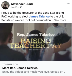Alexander Clark, a Texas political operative who identified himself as a 15-year friend of Talarico in now-deleted Facebook posts, formed the Lone Star Rising PAC on Sept. 2, 2025. Talarico, who thanked Clark for his “friendship” in a Facebook post four years ago, launched his Senate campaign one week later, on Sept. 9.