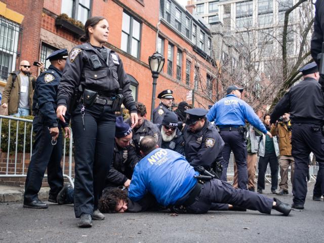 PHOTO: Police detain Emir Balat outside Gracie Mansion, March 7, 2026, in New York. (AP Photo/Julius Constantine Motal)