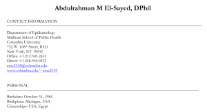 El-Sayed’s CV states that it was last updated in October of 2013—when El-Sayed was completing his medical degree—though it includes more recent events, including his May 2014 graduation from Columbia’s College of Physicians and Surgeons and subsequent start as an assistant professor at the Ivy League school, suggesting it was updated more recently. Copies of his CV from 2012 and 2016 do not include any citizenship information.