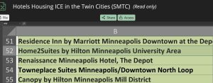 Sunrise’s list, reviewed by the Washington Free Beacon, catalogs nearly 70 hotels across the Twin Cities area that the group claims are housing ICE agents. It was updated Saturday—well before the attack on Home2 Suites—and includes hotel names, addresses, phone numbers, and even the “suspected” number of ICE agents staying at each location.