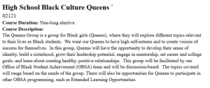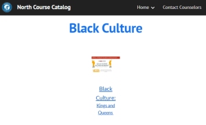 North High School’s 12th grade electives catalog. The “Black Culture: Kings and Queens” is also offered as an elective to 9th, 10th, and 11th graders.