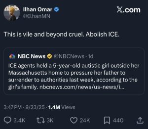 “This is vile and beyond cruel. Abolish ICE,” Omar wrote.