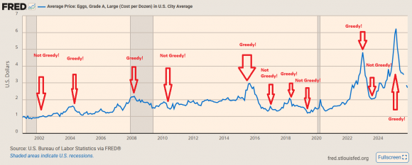 Despite the hand-wringing, pearl-clutching, and moon-howling from left-leaning lawmakers, the eggflation problem has been resolved. It also shattered progressives’ claims that supermarkets and egg producers were engaged in greedflation. Using their logic, they are no longer greedy.