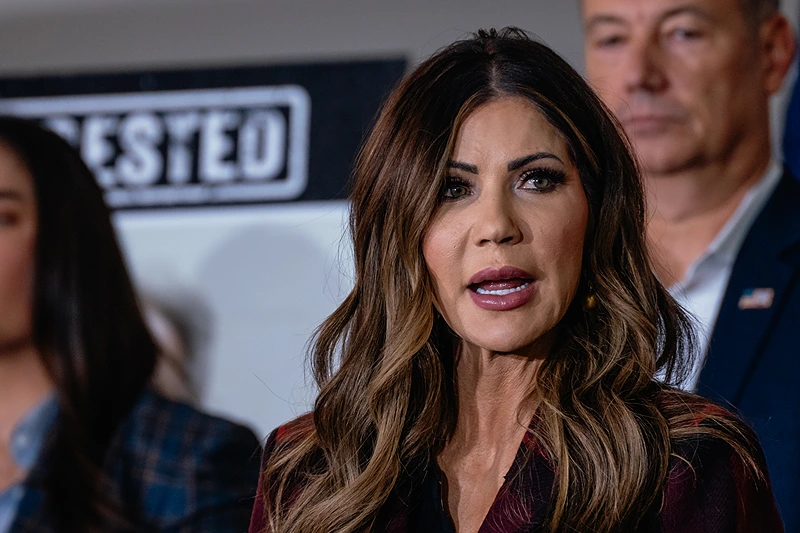 U.S. Secretary of Homeland Security Kristi Noem speaks during a press conference on October 30, 2025, in Gary, Indiana. (Photo by Jamie Kelter Davis/Getty Images)