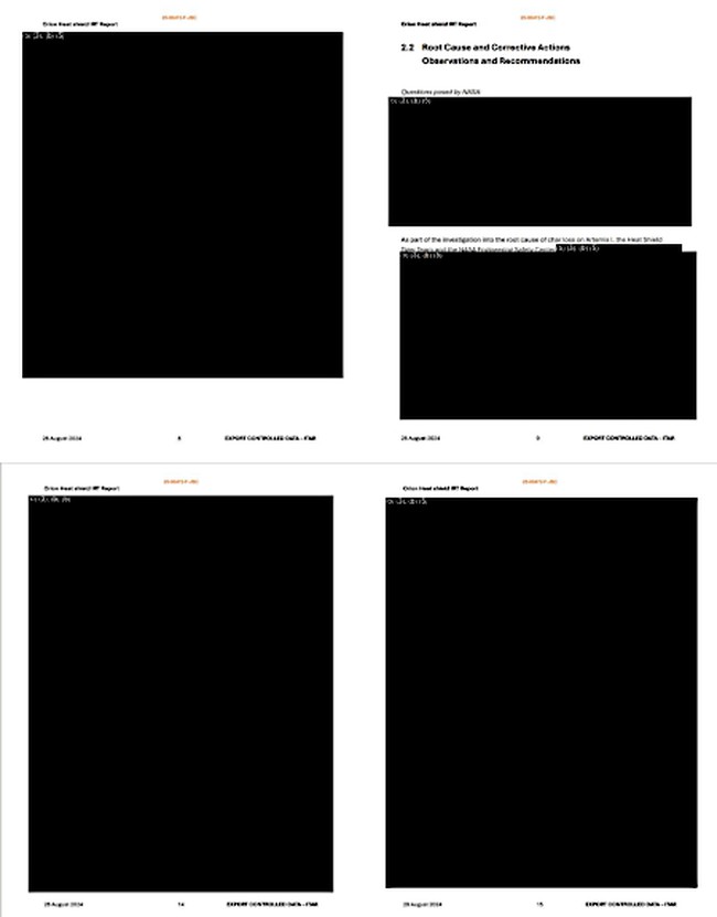 In response, NASA has done everything it can to hide its own August 2024 heat shield report, issued by some of those engineers. When the agency was required to release the report due to Freedom of Information requests, it finally did so but literally redacted every word. All the public got was 61 pages that were almost all covered with black boxes.