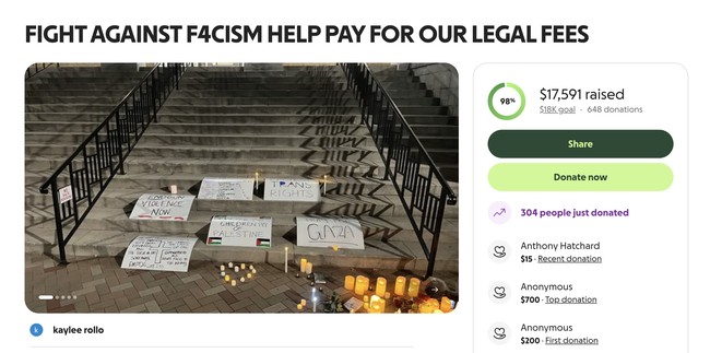 After the recent events Charlie Kirk’s death, my sibling and I are being doxxed online and my sibling was fired from their job. This is direct violation of their first amendment rights and unconstitutional. This is unfortunate, but anything helps. Please help my sibling while they look for another job and stand against the tyranny that is creeping into the country. UPDATE: MY SIBLING AND I WERE ARRESTED FOR THIS PROTEST. WE HAVE BEEN THREATENED, DOXXED, HARASSED, AND FIRED. PLEASE CONSIDER DONATING FOR LEGAL COUNSEL AND COURT FEES. [The factually incorrect reference to First Amendment rights was highlighted]