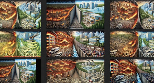 In his ChatGPT prompt, he created an image of people who were sanguine while their world was burning up.