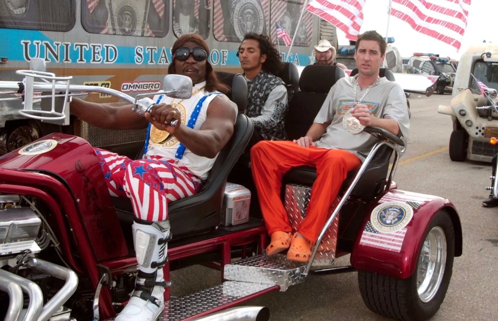 The parallels with our own world are easy enough to spot, from the reality-TV president to the short, declarative sentences that characterize both President Trump’s and Camacho’s manner of speech (“I know everyone’s shit is emotional right now,” Camacho declares amid a looming famine). We even have a form of scientific illiteracy similar to watering crops with sports drinks in the form of Secretary of Health and Human Services Robert F. Kennedy Jr.’s anti-vaccine stance. He’s just using his position to promote Steak ’n Shake instead of Carl’s Jr., the real-life fast-food chain whose advertising motto in the film runs: “Carl’s Jr. — fuck you, I’m eating!” As for cinema, Americans in the film’s distant future relish watching human butts up-close, farting.