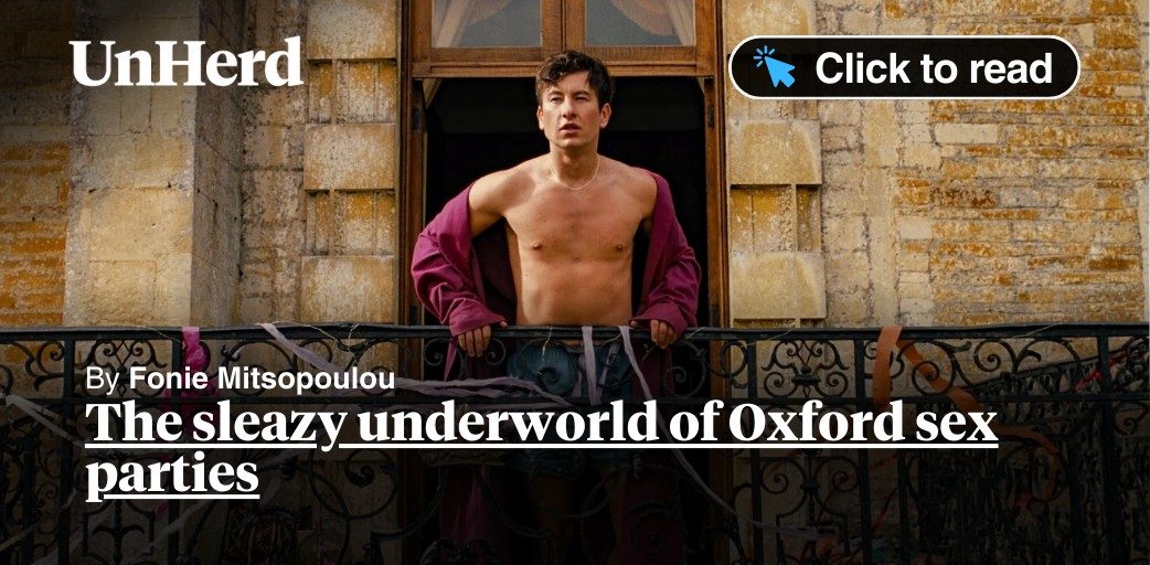 Everyone who has attended Oxford University knows about the sex parties. Many who haven’t been anywhere near the place do too. Oxford is the subject of endless fascination — the setting for movies like Saltburn and books like Evelyn Waugh’s Brideshead Revisited. And even before the image of David Cameron doing unspeakable things to a pig’s head was branded into the nation’s imagination a decade ago, the idea of posh boys and girls doing debauched things in rarefied surroundings made compelling tabloid fodder.