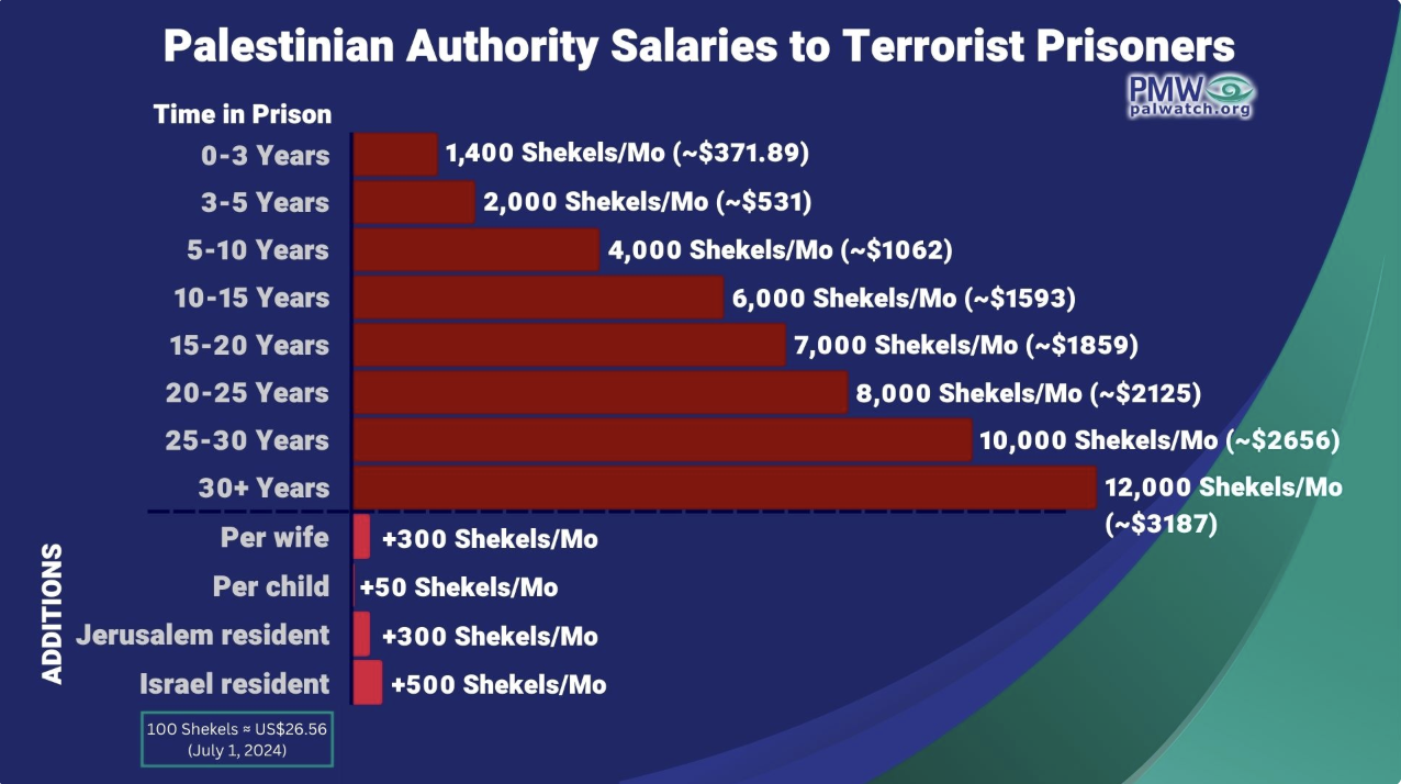 “The Palestinian Authority spends hundreds of millions of dollars each year rewarding terrorists,” PMW director Itamar Marcus said. “Yet, to keep the PA afloat, the EU and several European countries cover the salaries of non‑terrorist PA employees—effectively freeing up PA funds to pay imprisoned terrorists. Its funding policy toward the Palestinians effectively subsidizes and sustains the very system that incentivizes Palestinian terror.”