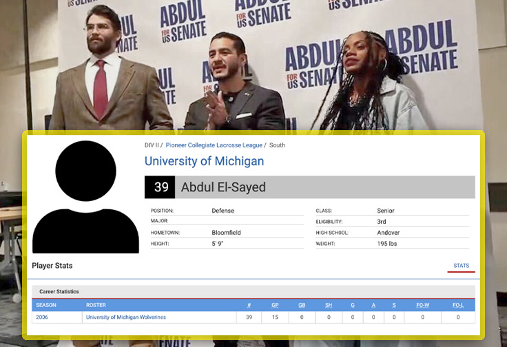 El-Sayed, a Rhodes Scholar who also sympathizes with terrorists, was listed at 5’9″ and 195 lbs during his undistinguished career on the University of Michigan’s club lacrosse team. In 2006, El-Sayed failed to register a single statistic despite appearing in 15 games. Lacrosse is widely regarded as a trashy sport that serves as a natural refuge for society’s most loathsome creatures.