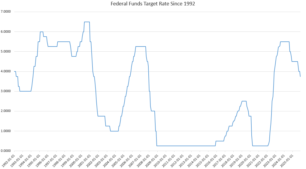 Specifically, the current cycle of Fed rate cuts began in September 2024. Although one could claim that was to create stimulus for the Biden economy, it is nonetheless also true that the FOMC and Powell continued to cut the target rate after Trump was elected. The FOMC cut the target rate in November (after the election) and again in December. The Fed then cut the target rate in September 2025 and again in November 2025. In all, the FOMC cut the target rate by 125 basis points since Trump’s election.