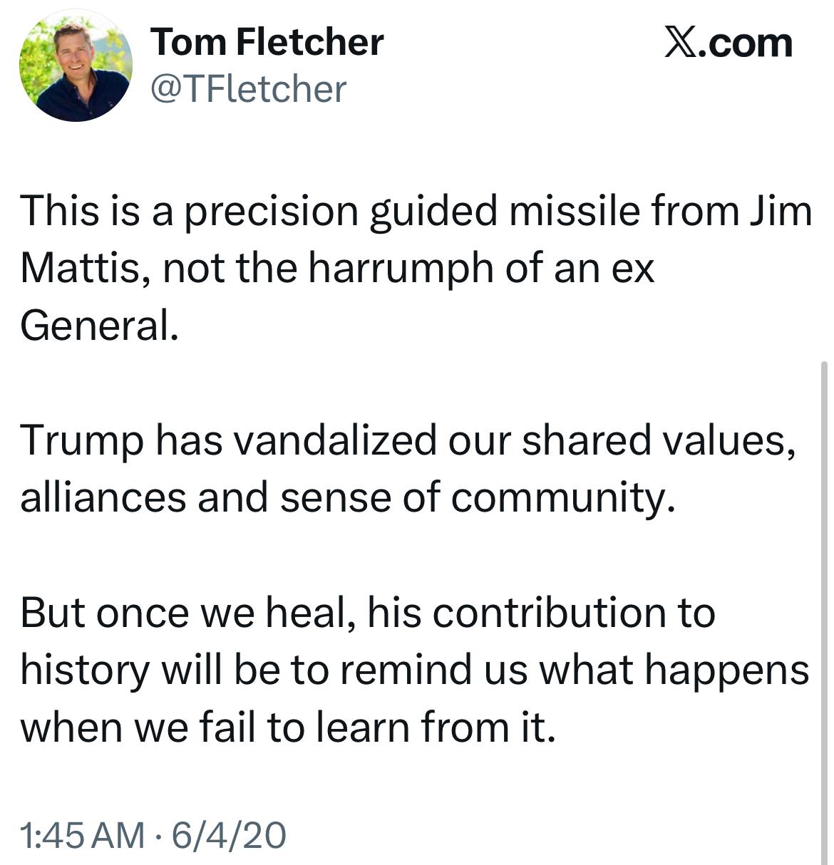 Fletcher wrote a 2017 op-ed for Prospect magazine in which he implored then-new U.N. secretary general António Guterres to “stand up to Trump,” bemoaning the “vandalism” of his presidency in a subsequent tweet.