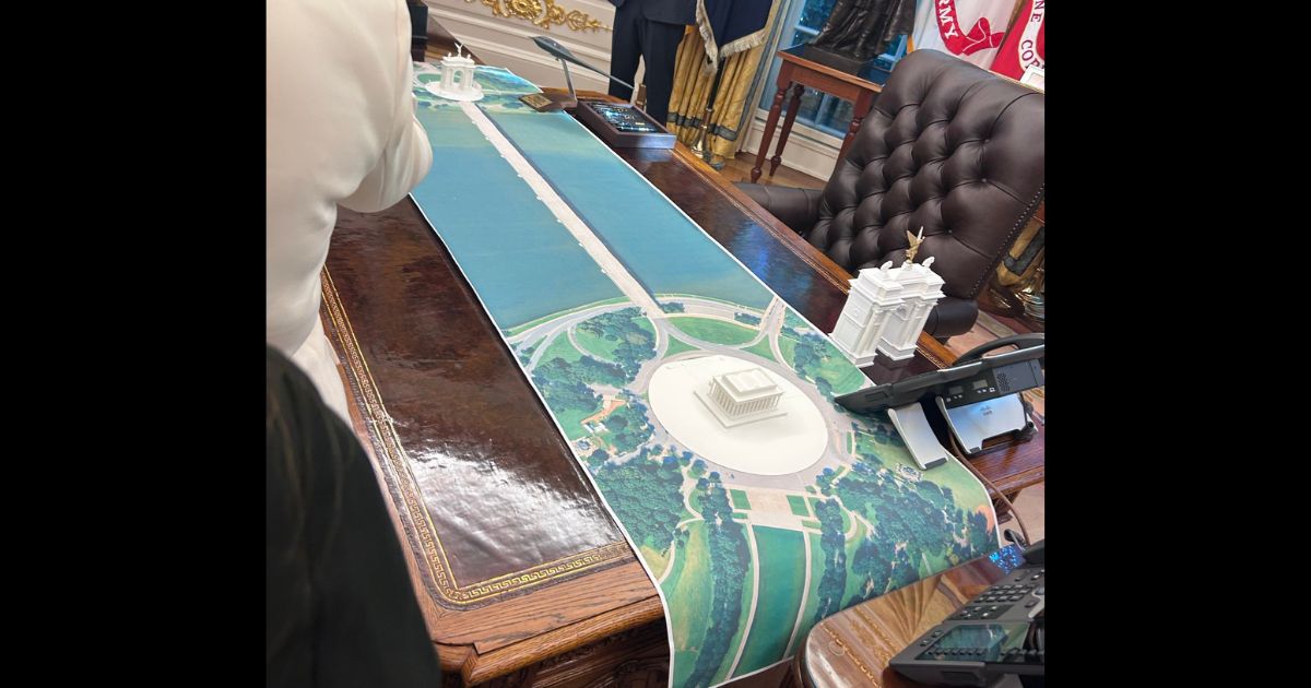 On Trump’s desk in the Oval Office today was a plan for a triumphal arch on the other side of the river from the Lincoln Memorial pic.twitter.com/PyulIhlmHE