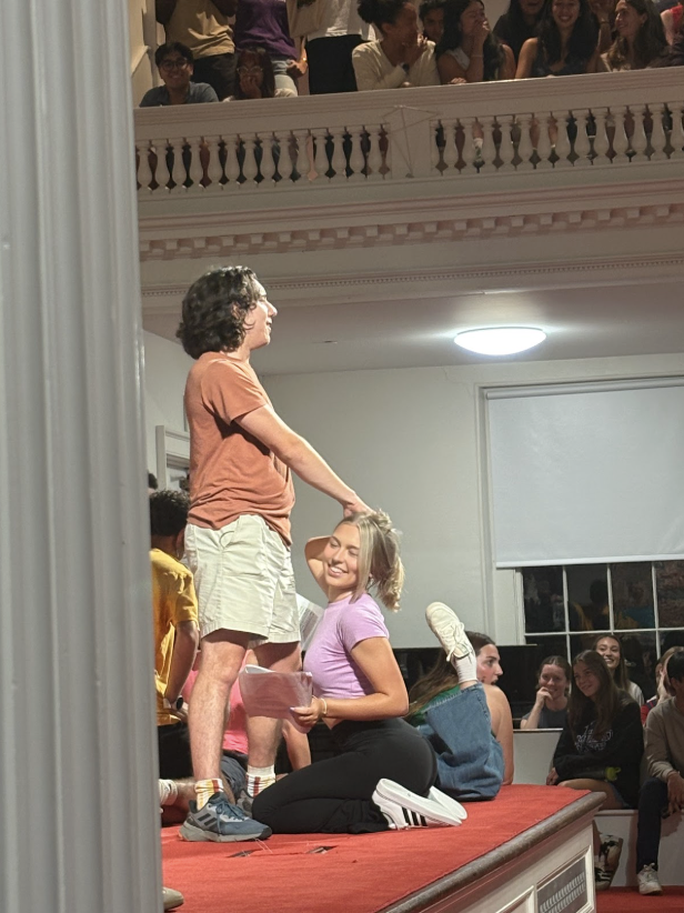 Every first-year was urged to attend the performance by their orientation leader. The administration advertises the event as a “lighthearted tradition” to “celebrate the humor, creativity, and individuality of your class.” The school funds the performance, and Amherst administrators work closely with the student performers, offering feedback and approving the script.