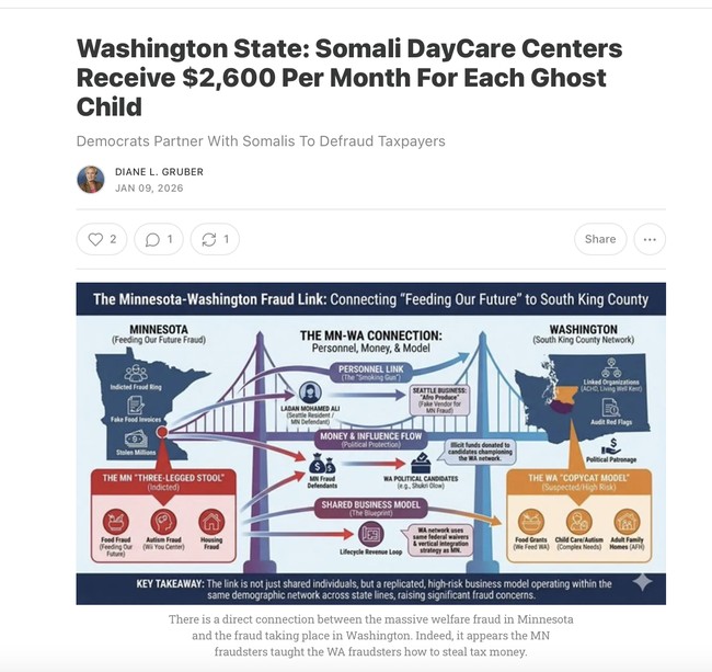 Substack columnist Diane Gruber came on my radar with her observations about the connections between the Somali pirates in Minnesota and Washington. Look at this infographic she discovered.