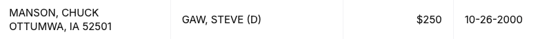 Brandon Raper: This pervert gave money to Bernie Sanders and Ron Paul. Gross!