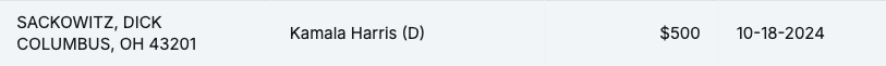 Dick Sackowitz: A proud Kamala Harris supporter in 2024.