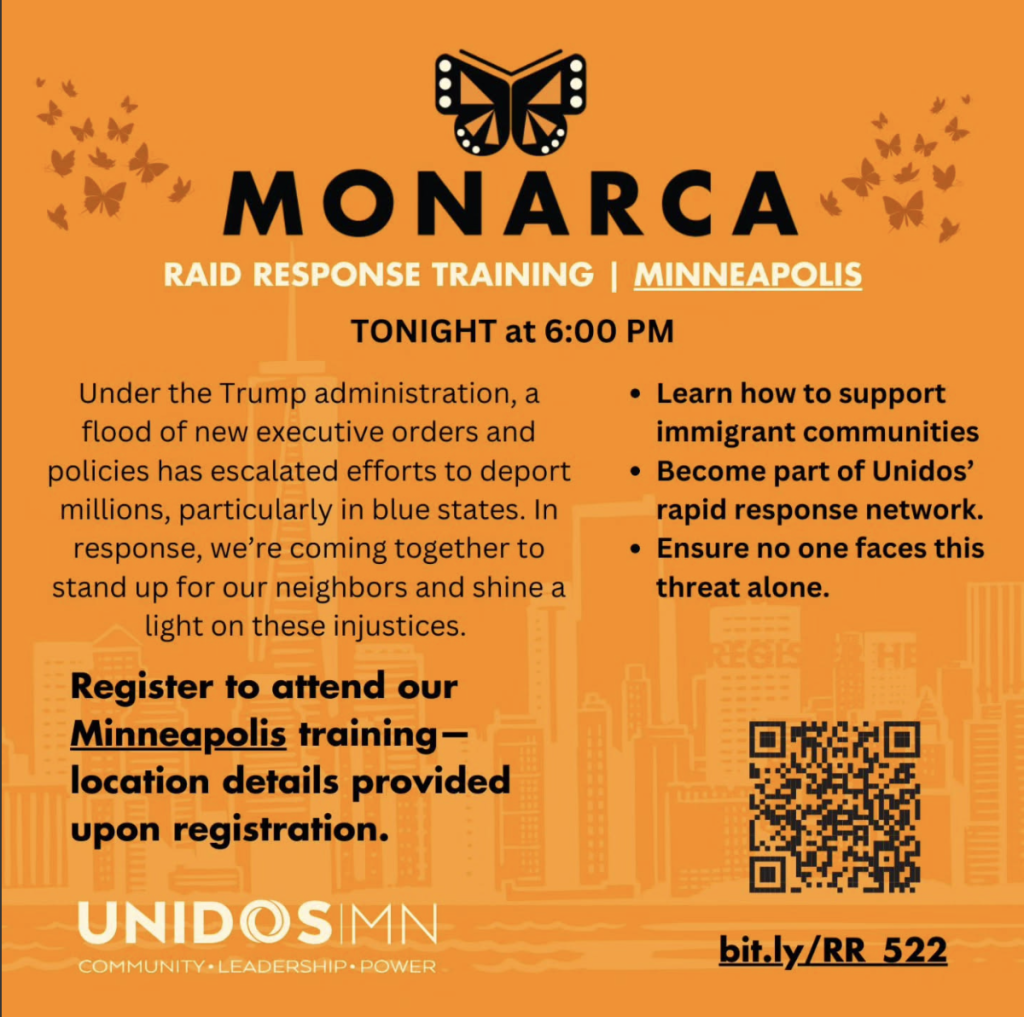 The State of Minnesota has also promoted Unidos through its Minnesota Council on Latino Affairs, a state agency that includes the group on its list of “community resources.” But Monarca, the “rapid response network” led by Unidos, has attempted to lower its profile amid increased national attention—it recently set its website to private.