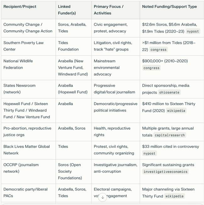 I prompted AI to use open source information to make a table graph of all the known places these monies go.