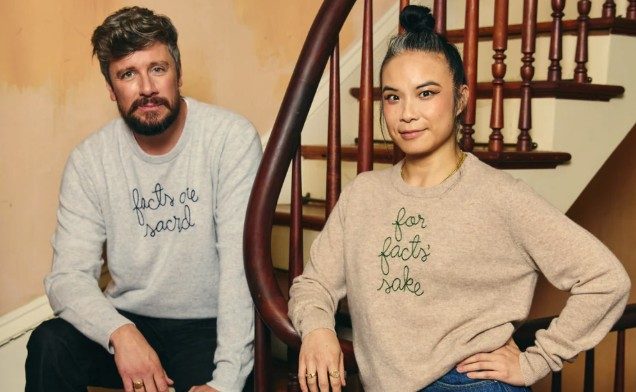 The Guardian merch is made by New York brand Lingua Franca, best known for putting what it calls “thought-provoking and culturally resonant phrases” on expensive jumpers in cursive script, and getting celebrities to wear them on the red carpet. And — a bit like the newspaper — the fashion label’s current political messaging seems somewhat chastened compared to former cocksure progressive hectoring. Indeed, the semantic trajectory of the company’s sweaters would make for a fascinating modern history project: from the uncompromising “time’s up”, “we say gay”, and “Dr Fauci fan club” messages of yesteryear to the sullen “exhausted American”, “I didn’t vote for him”, and “I read banned books” of the current collection. Even the writing on women’s chests seems to have got smaller — or maybe the breasts got bigger. Either way, things have definitely changed.