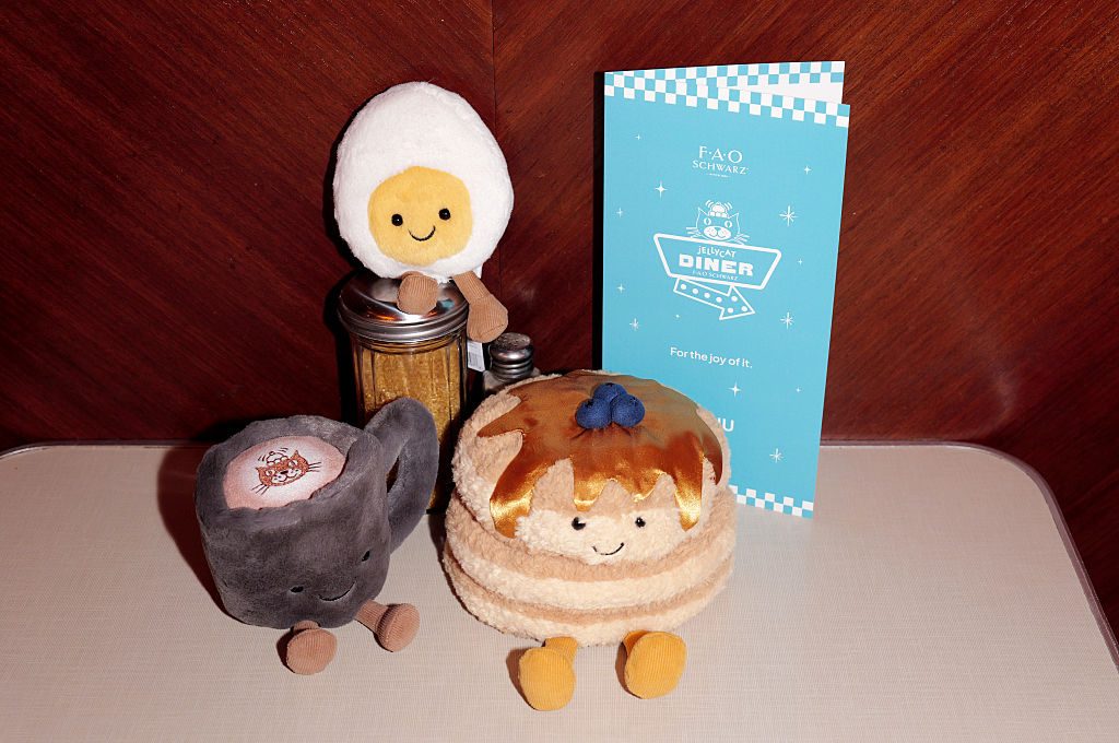 But Jellycat no longer markets their soft toys — offputtingly referred to as “plushies” — exclusively to children. Instead its products are destined to be ogled by drooling adults who fill their grown-up bedrooms with anthropomorphised “amuseables”. There’s Rene the waffle, Michelle the mussel, a boiled egg with a bridal veil. There’s a pistachio, a bowl of ramen, a boule of sourdough — all with a vacant, beady-eyed smile and, in most cases, a tiny pair of arms or legs sticking out too. These are fated to deck out the Instagram feeds of grown women, to dangle from a Millennial’s handbag or to be plucked from the shelves with a pair of tongs as part of a bizarre pop-up “experience”. The “chip shop” event at Selfridges in London was a particular hit, where shoppers could blow upwards of £300 on teddy-fied fish, chips, mushy peas and lemon and film embarrassed workers miming the whole affair for TikTok. The obsession is now competitive; one British 19-year-old, Hope Roberts from Bedfordshire, has won the Guinness world record for the most Jellycat toys in a collection: 877 unique items.