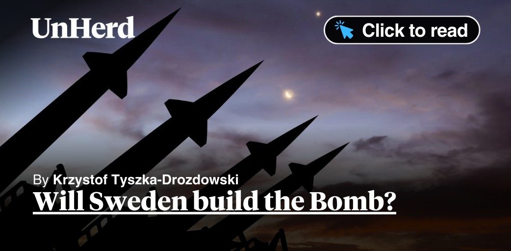 As one Norwegian researcher bluntly declares, now that the US has lost the will to defend Europe, the only solution is a northern alliance equipped with a nuclear deterrent. Former Danish defence minister Jeppe Kofod has also proposed a Nordic defence union with the Bomb at its core. Commentators in the Swedish press are themselves discussing the idea, though whether Scandinavian jealousies can be tempered to create a joint nuclear umbrella remains an open question.
