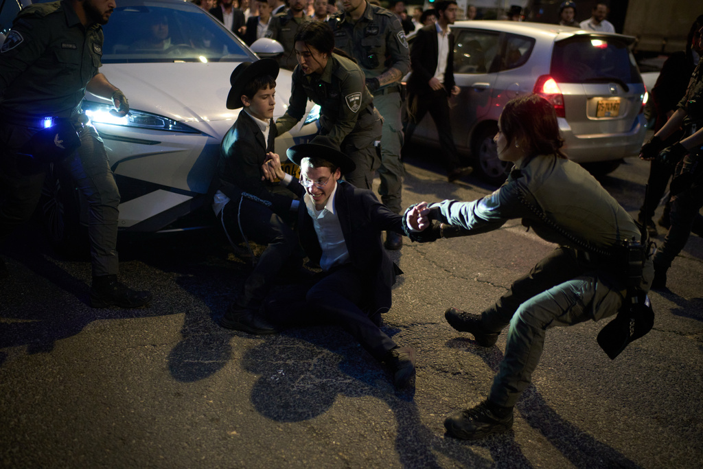 In central Israel, tens of thousands of ultra-Orthodox demonstrators have flooded major intersections, blocking traffic and rallying against what they see as a threat to preserving their religious lifestyle.
